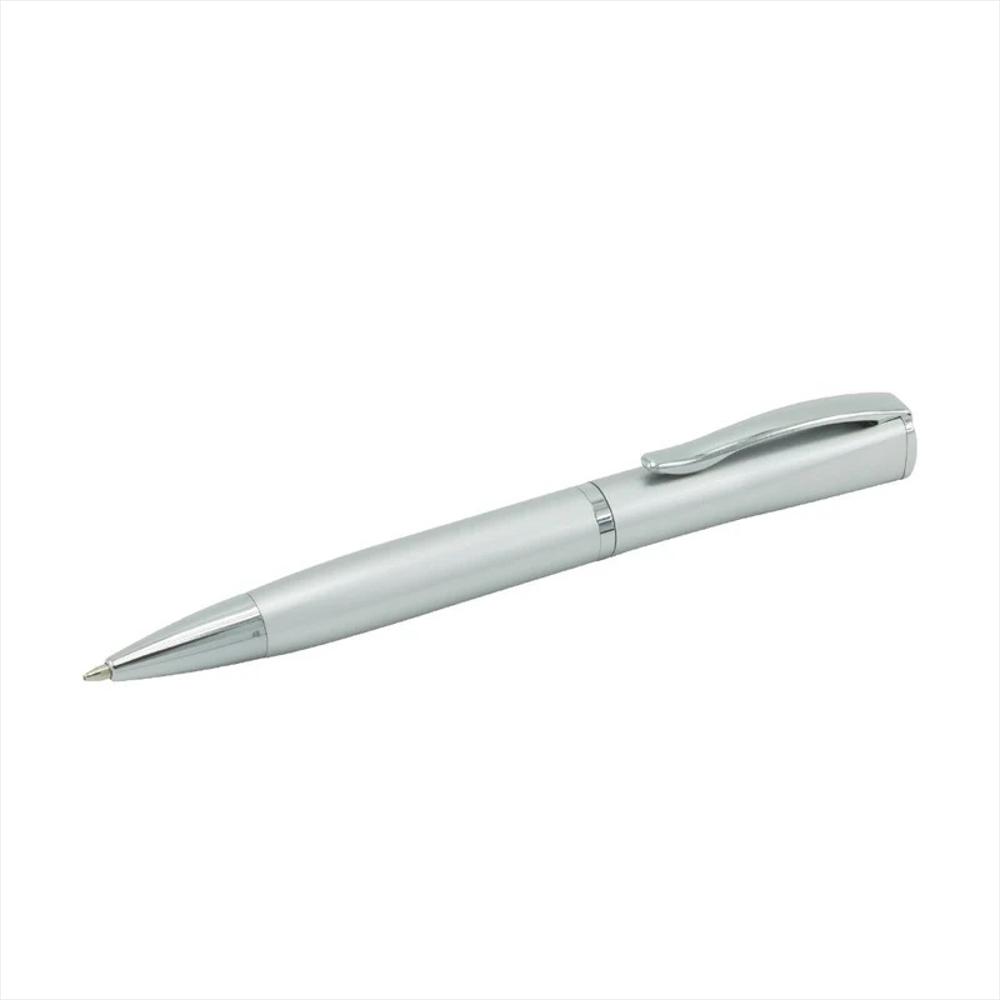 Esfero metálico, cuerpo brillante, clip y punta cromada.
