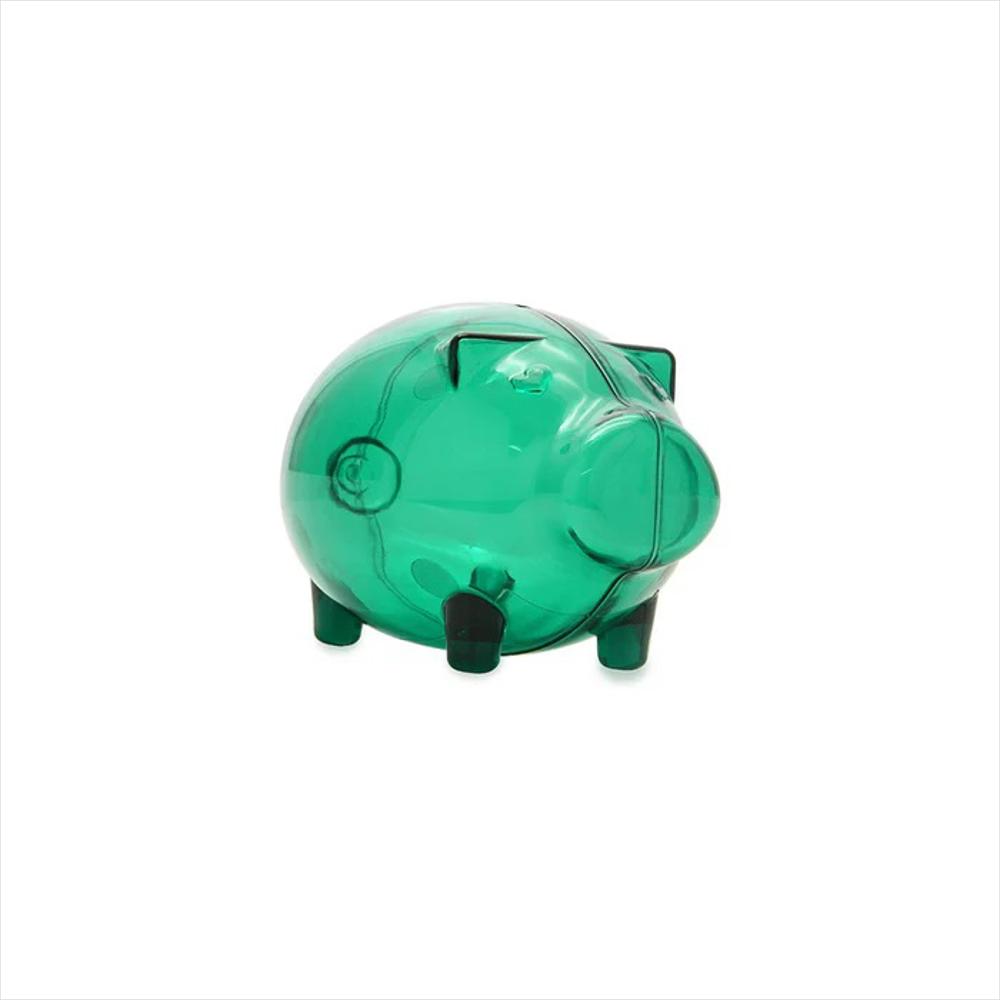 Alcancía transparente en forma de cerdito.