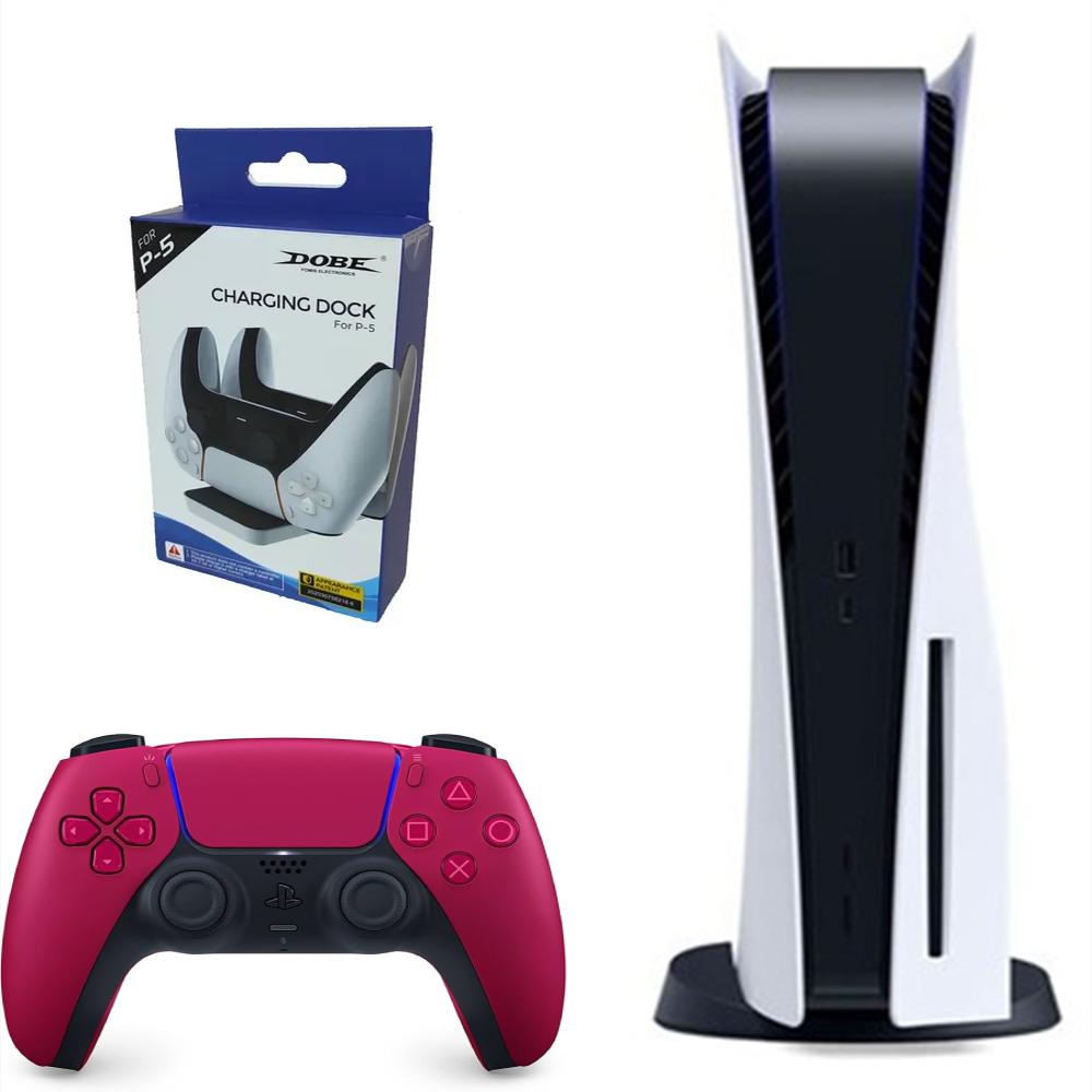 Consola Playstation 5 Fat Refurbish De Disco Con Control Rojo Y Base De Carga
