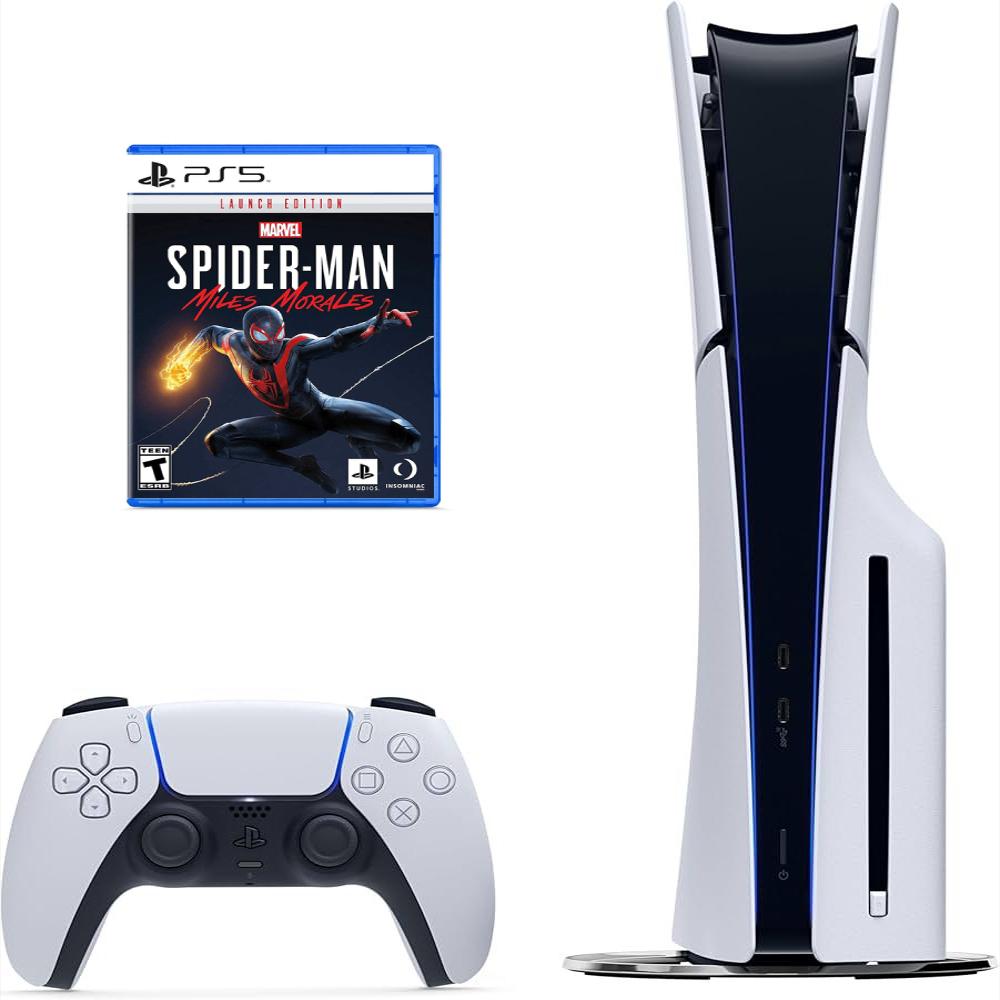Consola Playstation 5 Slim De Disco Con Control Blanco Y Videojuego Spider Man Miles Morales