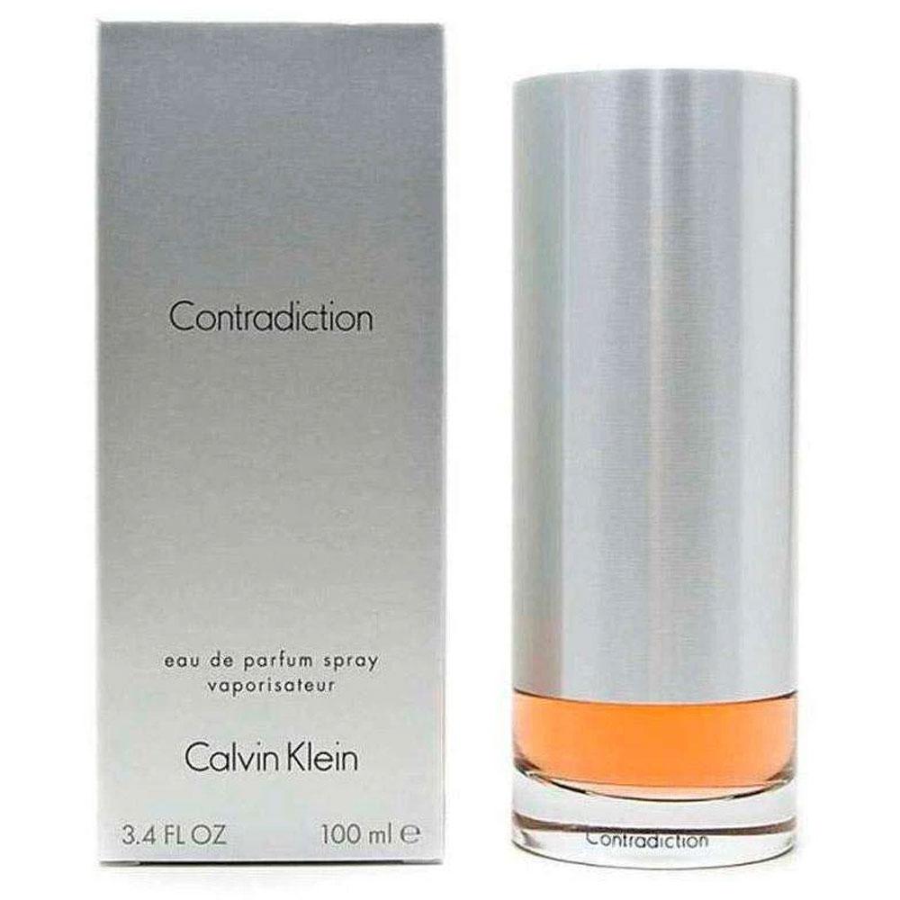 Contradiction de Calvin Klein es una fragancia de la familia olfativa Almizcle Floral Amaderado para Mujeres. Contradiction se lanzó en 1998. Las Notas de Salida son peonía, azucena, falso jazmín, orquídea, lirio de los valles (muguete) y rosa; las Notas de Corazón son zarzamora (frambuesa negra), eucalipto, flor del peral, lila y jazmín; las Notas de Fondo son sándalo, haba tonka y almizcle.